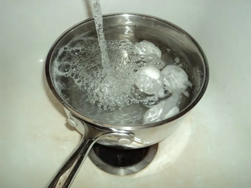 Then, transfer the eggs to a large bowl of ice water to cool.